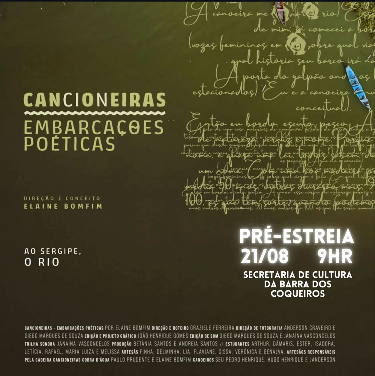 Durante a abertura, o público poderá prestigiar também a pré-estreia do curta “Cancioneiras – Embarcações Poéticas” (2025), dirigido por Elaine Bomfim. Produzido às margens do Rio Sergipe, o filme explora territórios subjetivos dos processos criativos, tradições que resistem ao tempo, relações que moldam identidades e o valor do trabalho artesanal.