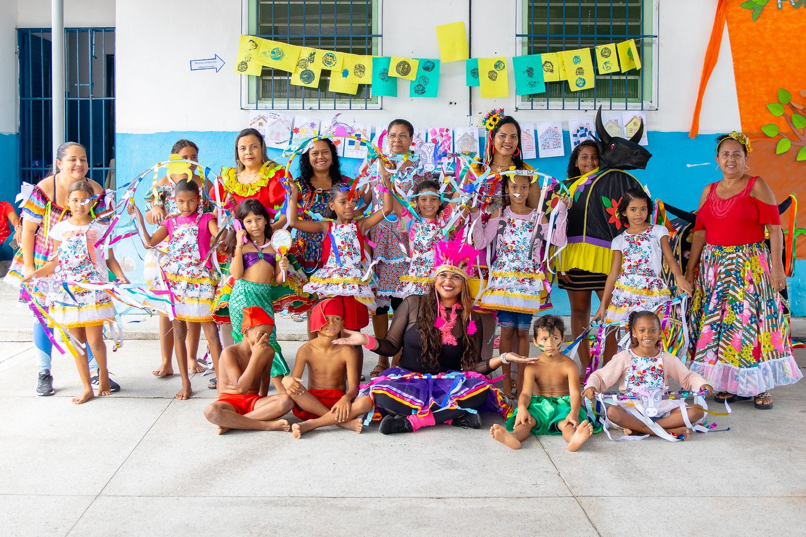 Durante a programação, crianças e adolescentes participaram de apresentações que destacaram danças tradicionais, brinquedos e brincadeiras típicas, reforçando a importância da preservação dos costumes e saberes populares.